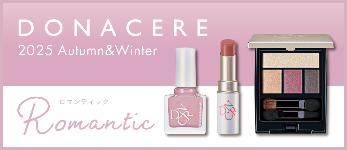2025秋冬コレクション やわらかいムードに。 -Warmful- 2025.09.01 お知らせメイクアップ 2025 Autumn & Winter COLLECTION やわらかいムードに。 温かみ溢れるブラウンの濃淡で自然な立体感を演出。 Warmful – ウォームフル ドナチェーレ アイカラーN BR04 2025.09.01 Debut しっとりと均一に広がりながら、ピタッと密着。上品な発色と輝きで、立体感のある魅力的な目元へ。 4色セット / 4,620円(税込) ➡ 商品ページ・ご購入はこちら ドナチェーレ メルティリップカラー BE355 2025.09.01 Debut とろけるようにのび広がり、均一にフィット。ふっくらと美しい唇に。 4g / 3,850円(税込) ➡ 商品ページ・ご購入はこちら ドナチェーレ ネイルカラーN PK154 2025.09.01 Debut 爪へのやさしさを追求し、上質なツヤと発色で指先を美しく彩ります。 10mL / 2,200円(税込) ➡ 商品ページ・ご購入はこちら 2025秋冬はこちら